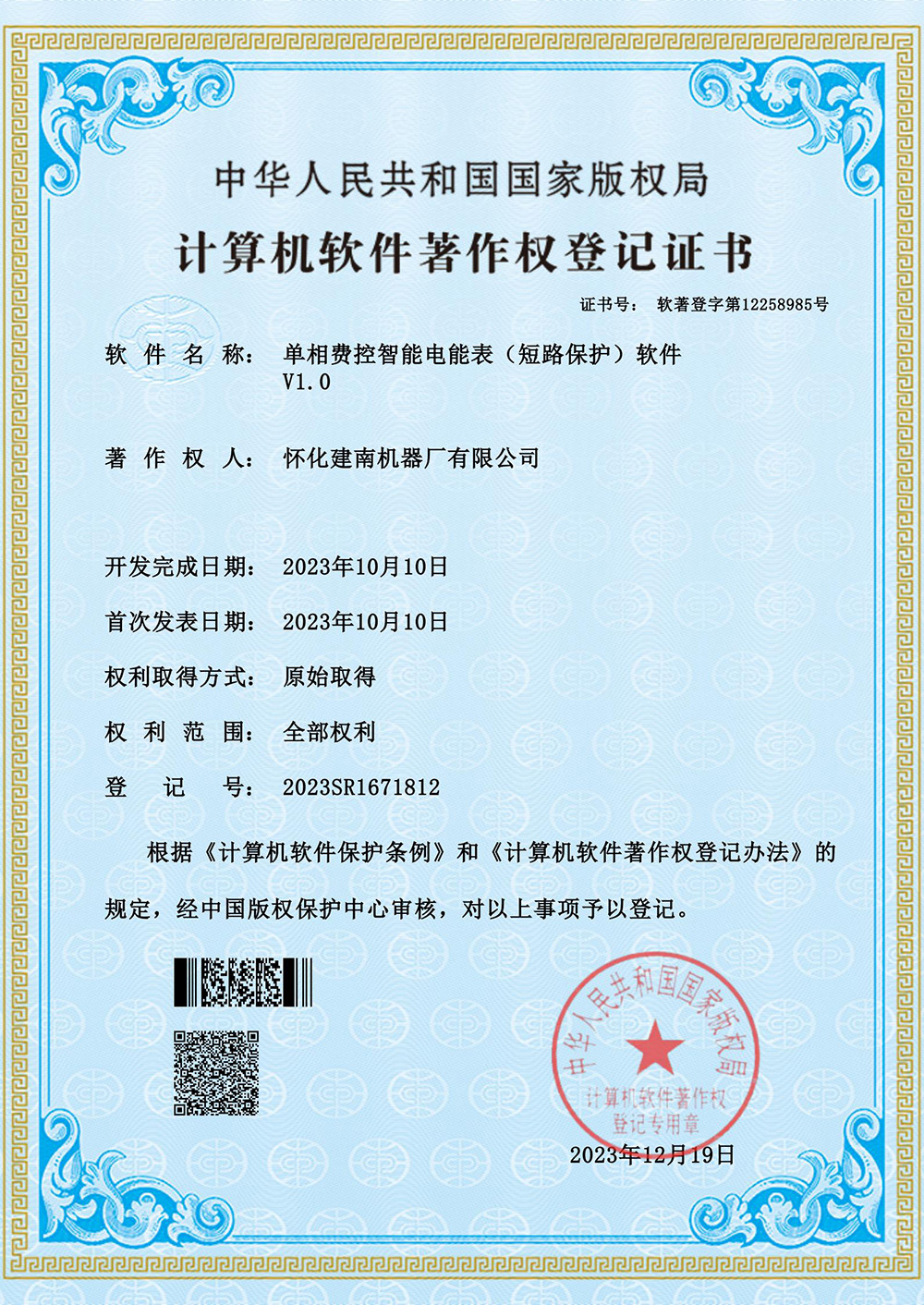 軟件著作(單相智能電能表)
